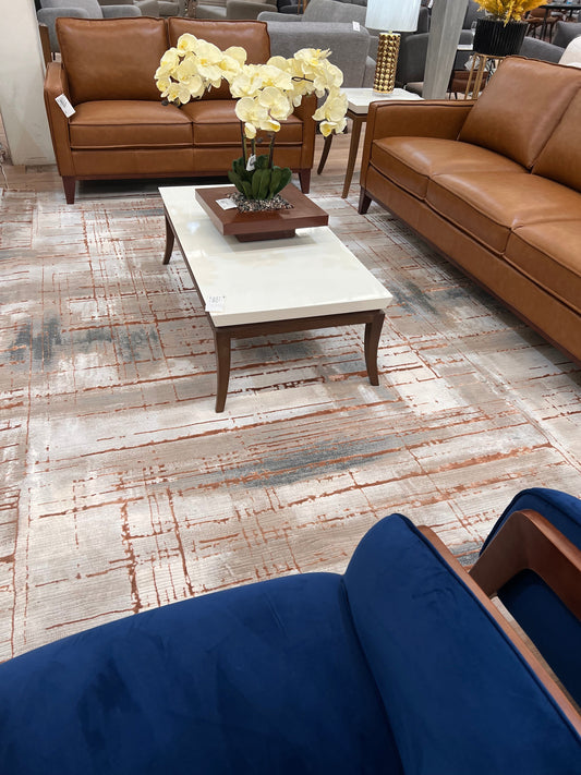 Crème Rug with Mocha & Taupe Abstract and Brick Tone-on-Tone Geometric High-Low Design - METZ 4208.