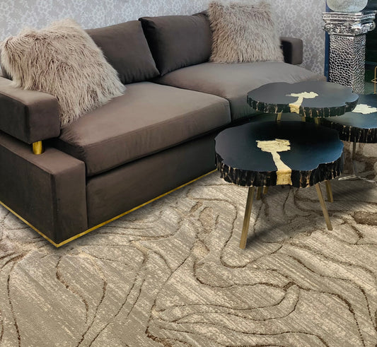Polyester Earth Tones Viscose Blend Abstract Design Rug/Carpet - Style# Maximus 233 - Color-Changing Flat Weave Rug