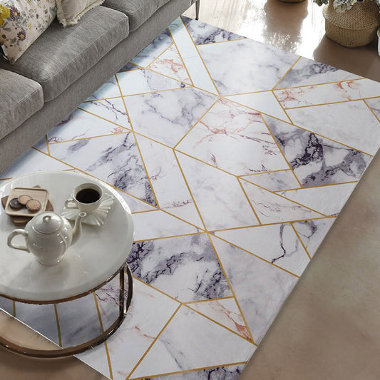 White Marble Multicolor Triangle Abstract Soft Cozy Comfortable Print Design Area Rug/ Carpet