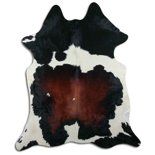 Modern Geometric Cowhide Rug – Black & White with Earth-Tone Checkers – 100% Real - Tikkul Black and White Patchwork Cowhide