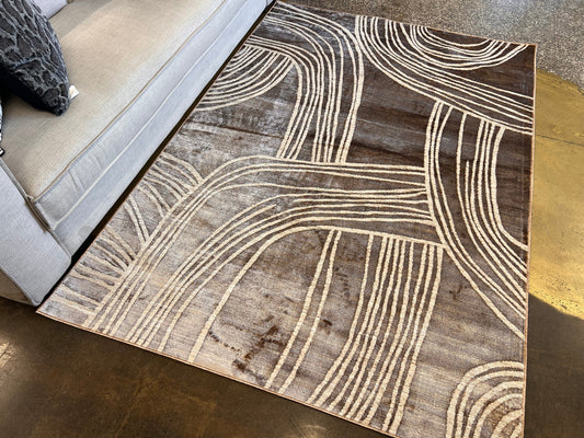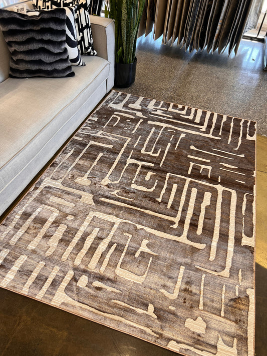 Two-Tone Bronze Abstract Rug with Cream Geometric Accents - KAI 211
