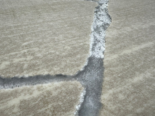 Two-Tone Sandy Beige Rug with Organic Live Edge Design.