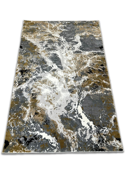 Abstract Grey Marble Rug Featuring Tan, Beige, Cream White & Black Notes – Soft Touch.