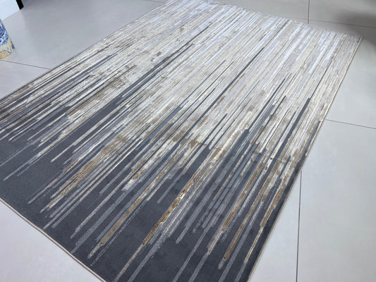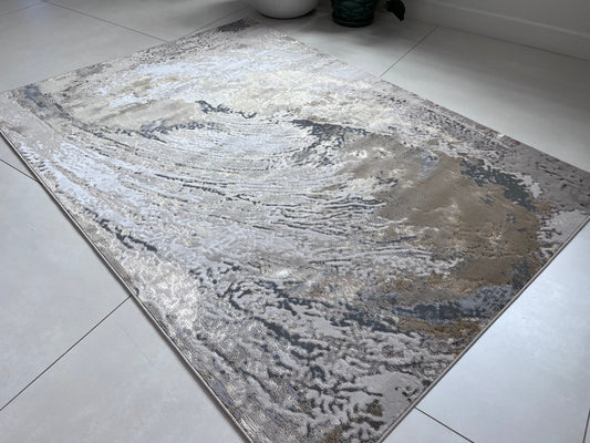 Polyester Silver with Gold Viscose Blend Swirl Design Rug/Carpet - Style# Maximus 240 - Color-Changing Flat Weave Rug