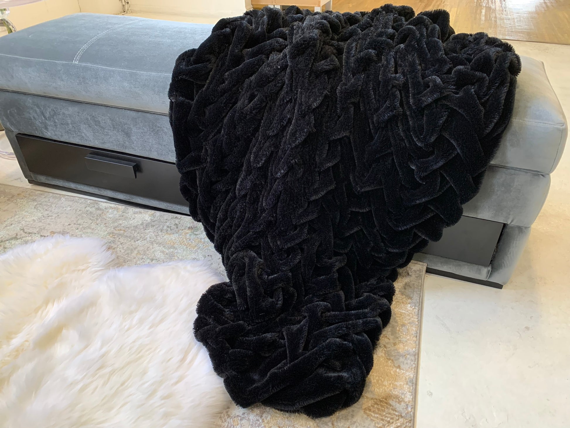 Braided Black and White & Mocha Soft Cozy Faux Fur Blanket/ Quilt/ Throw/ Bedcover/ Coverlet 50 X 60