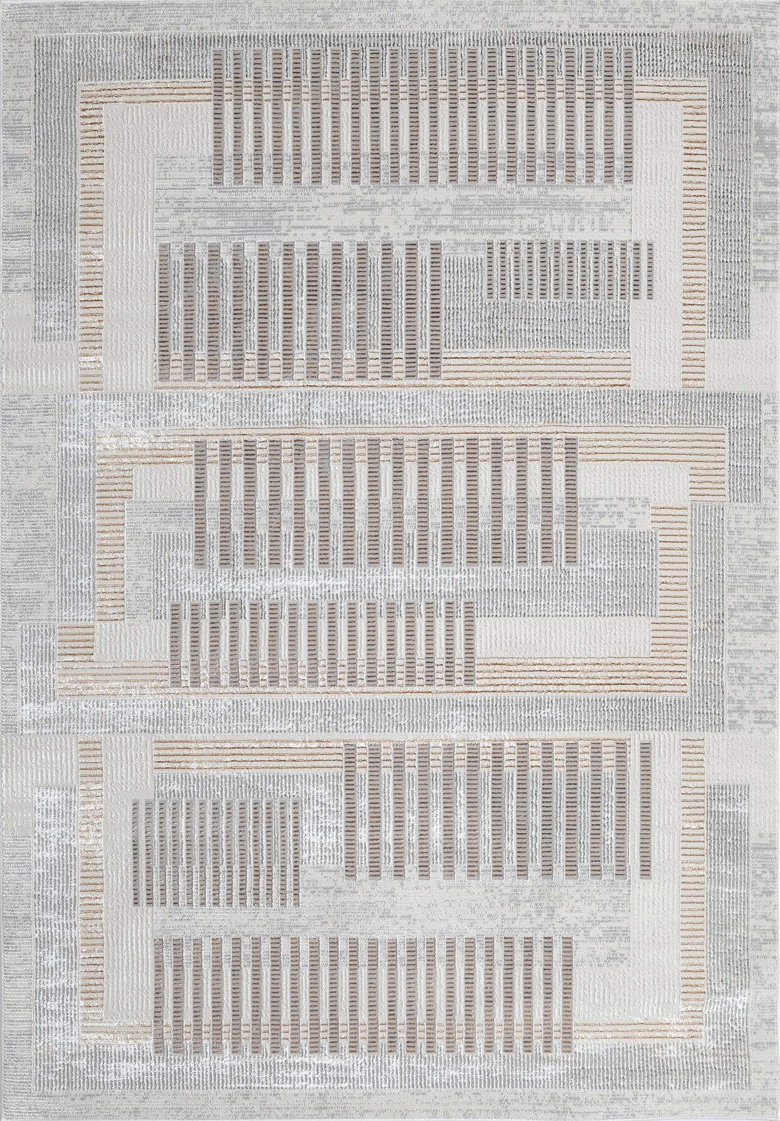 Cream-Based Viscose Rug with Subtle Bronze, Ivory & Grey Geometric Detailing - KAI 204