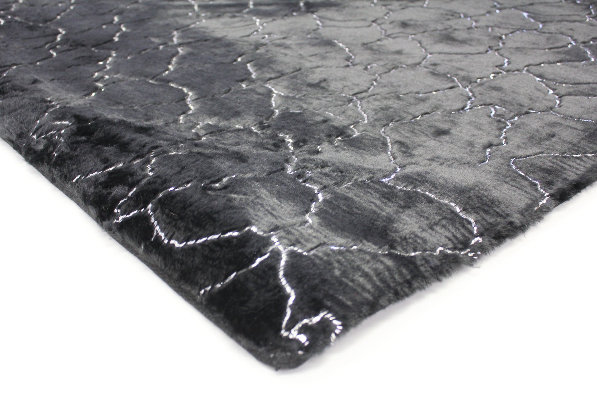 • Luxurious Black Marble with Silver Metallic Shimmery Design Faux Rabbit Touch Rug.