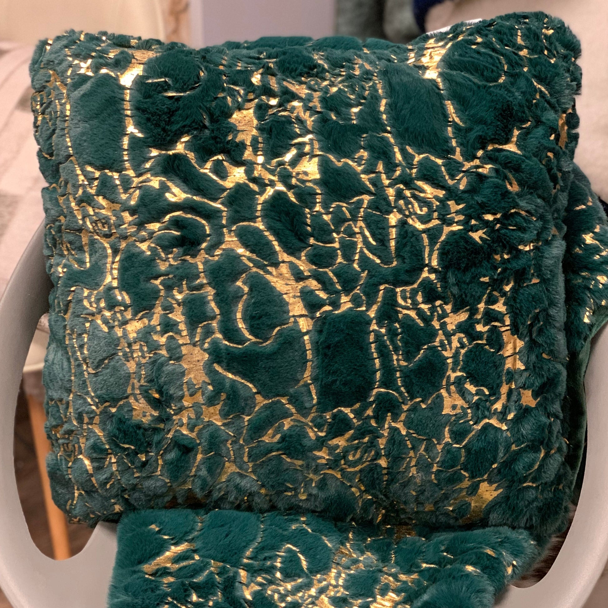 Whether adorning your living room or bedroom, this pillow's sumptuous texture and unique design bring a touch of opulence to your surroundings. Enjoy the synergy of elegance and comfort with our Golden Faux Fur Glow Fluffy Pillow.