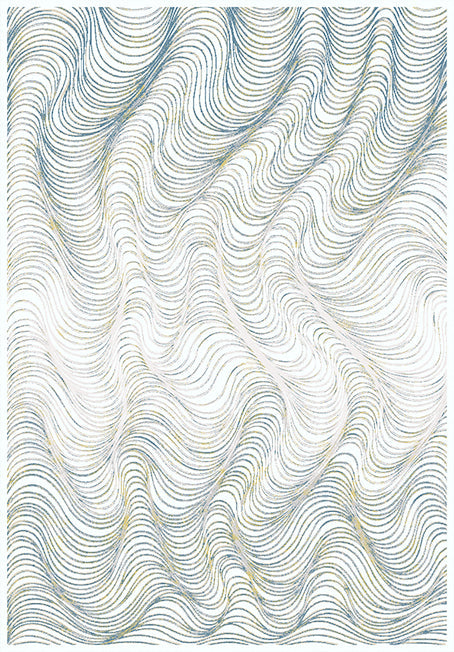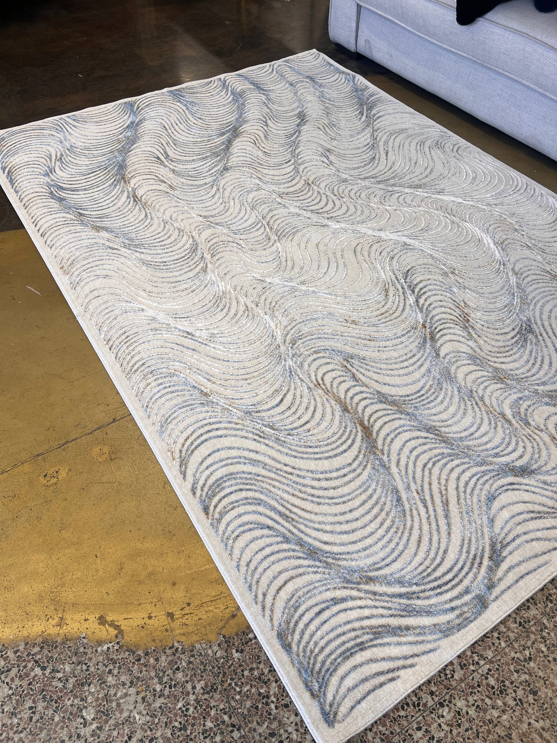 Modern Cream Rug with Blue, Gold-Brown & Silver Viscose Swirl Accents - KAI 304