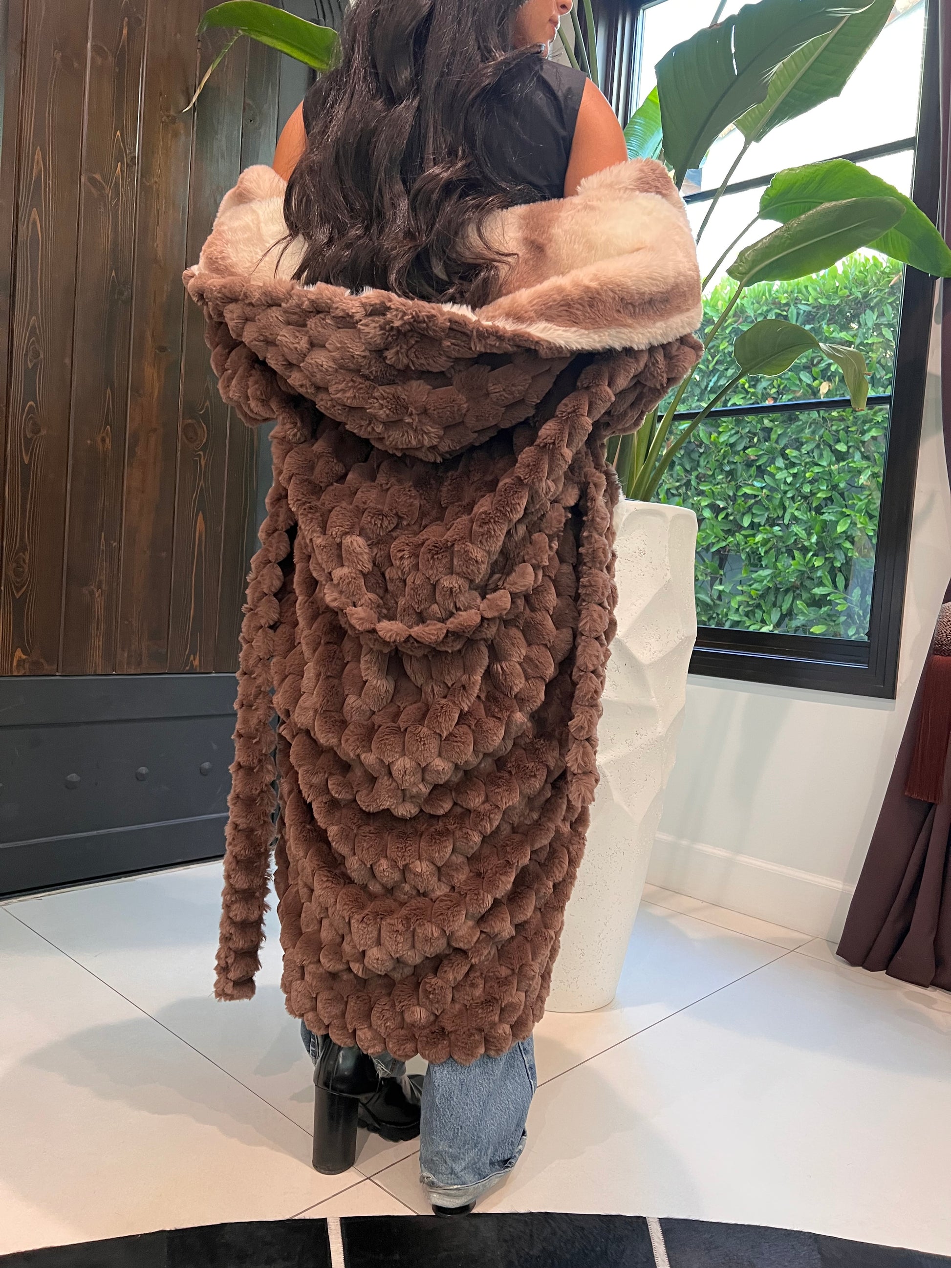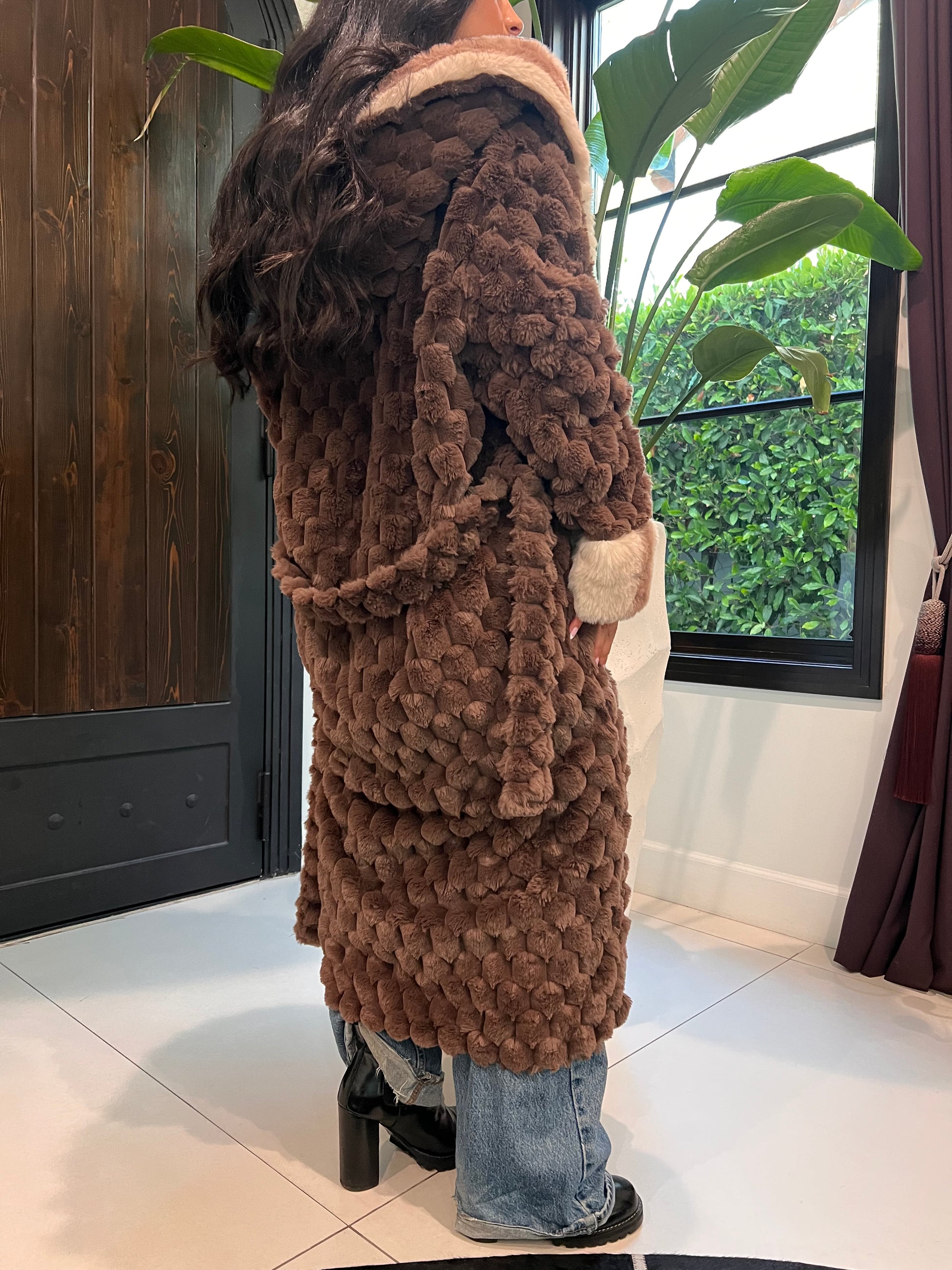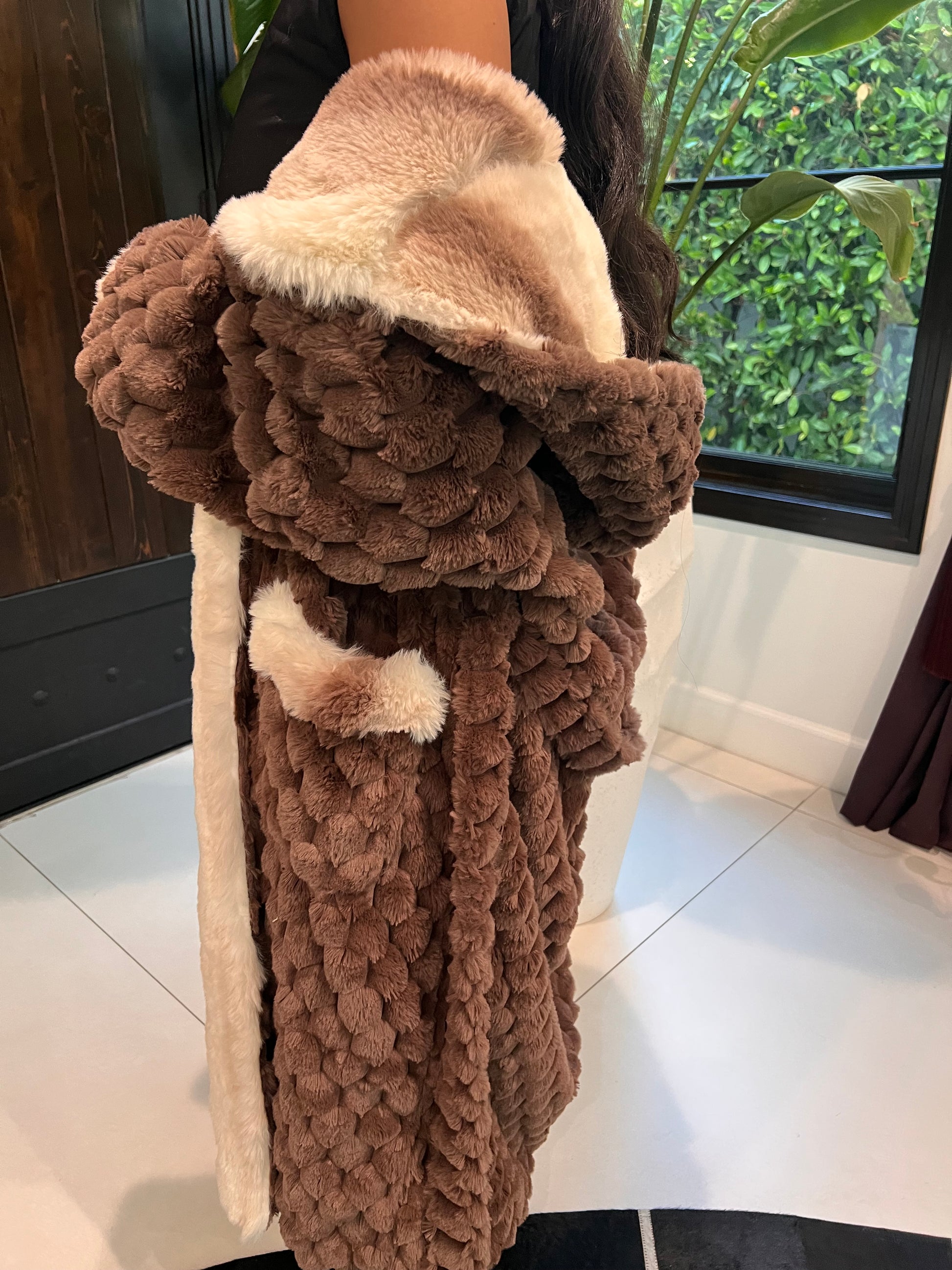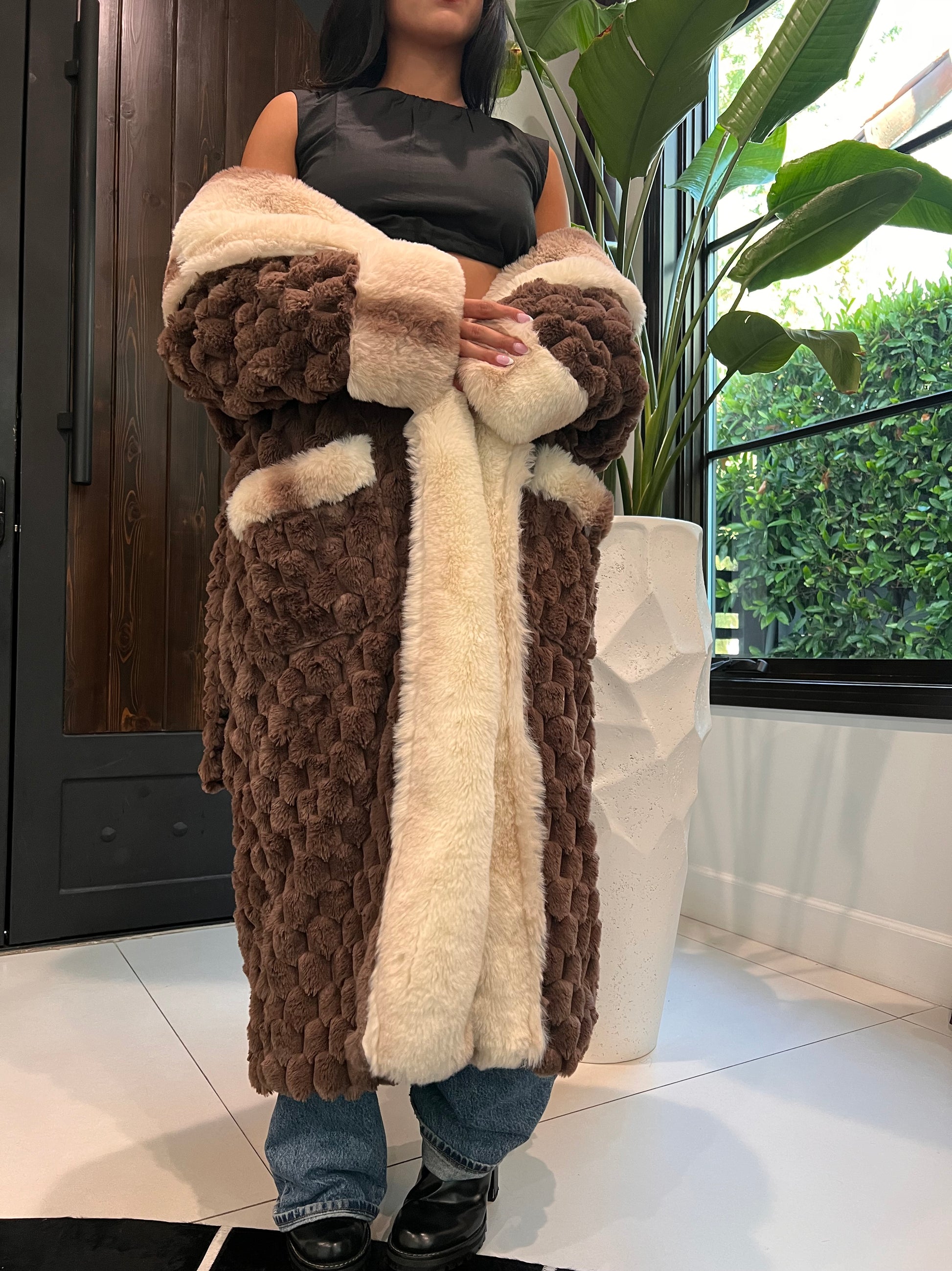 Stylish Soft-Touch Faux Fur Chocolate Robe with Tone-on-Tone Champaign Cozy Interior – Perfect for Lounging or Luxe Outdoor Wear - REXA ROBE 4.